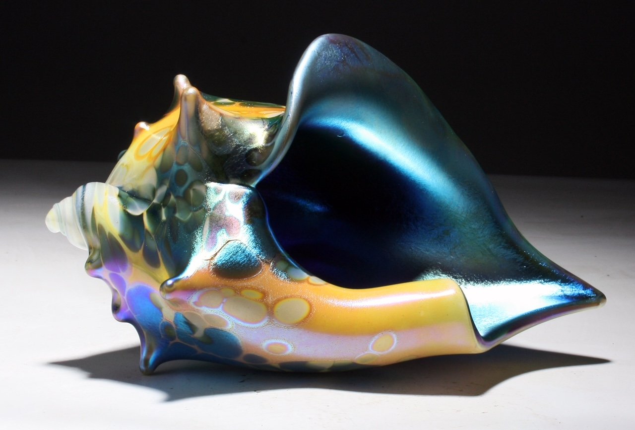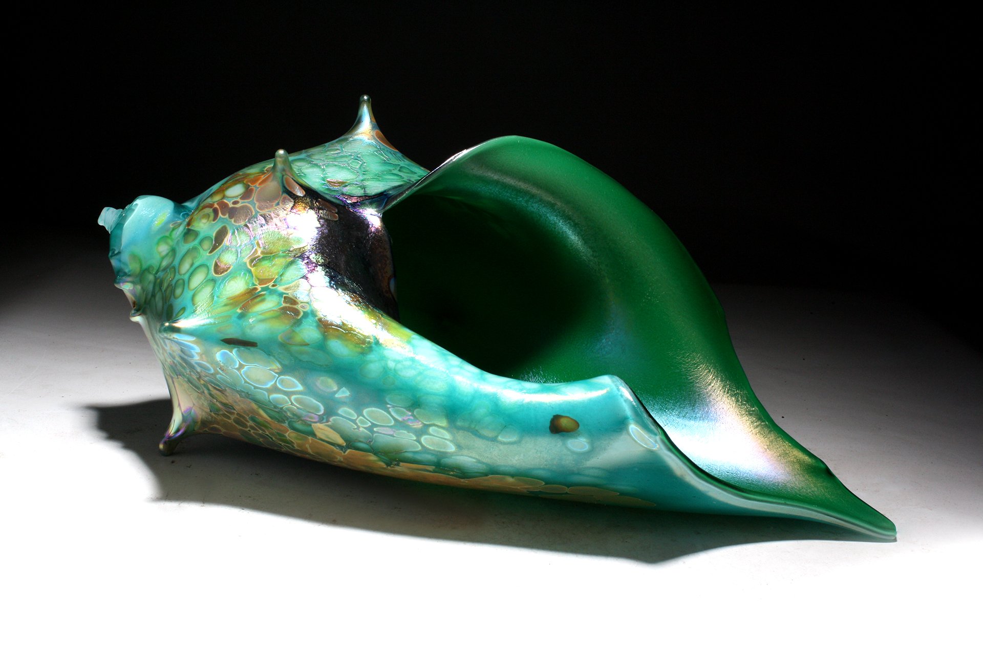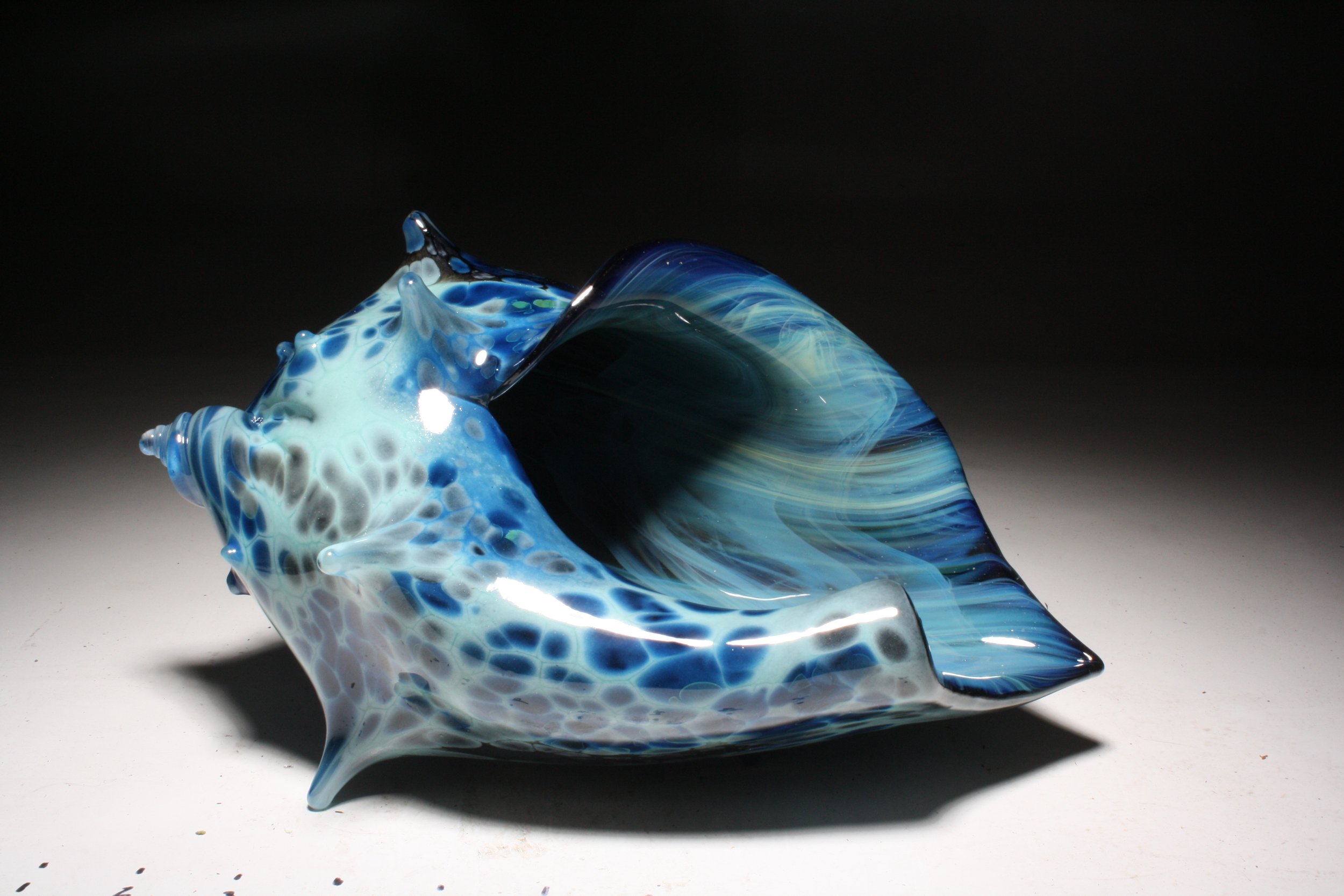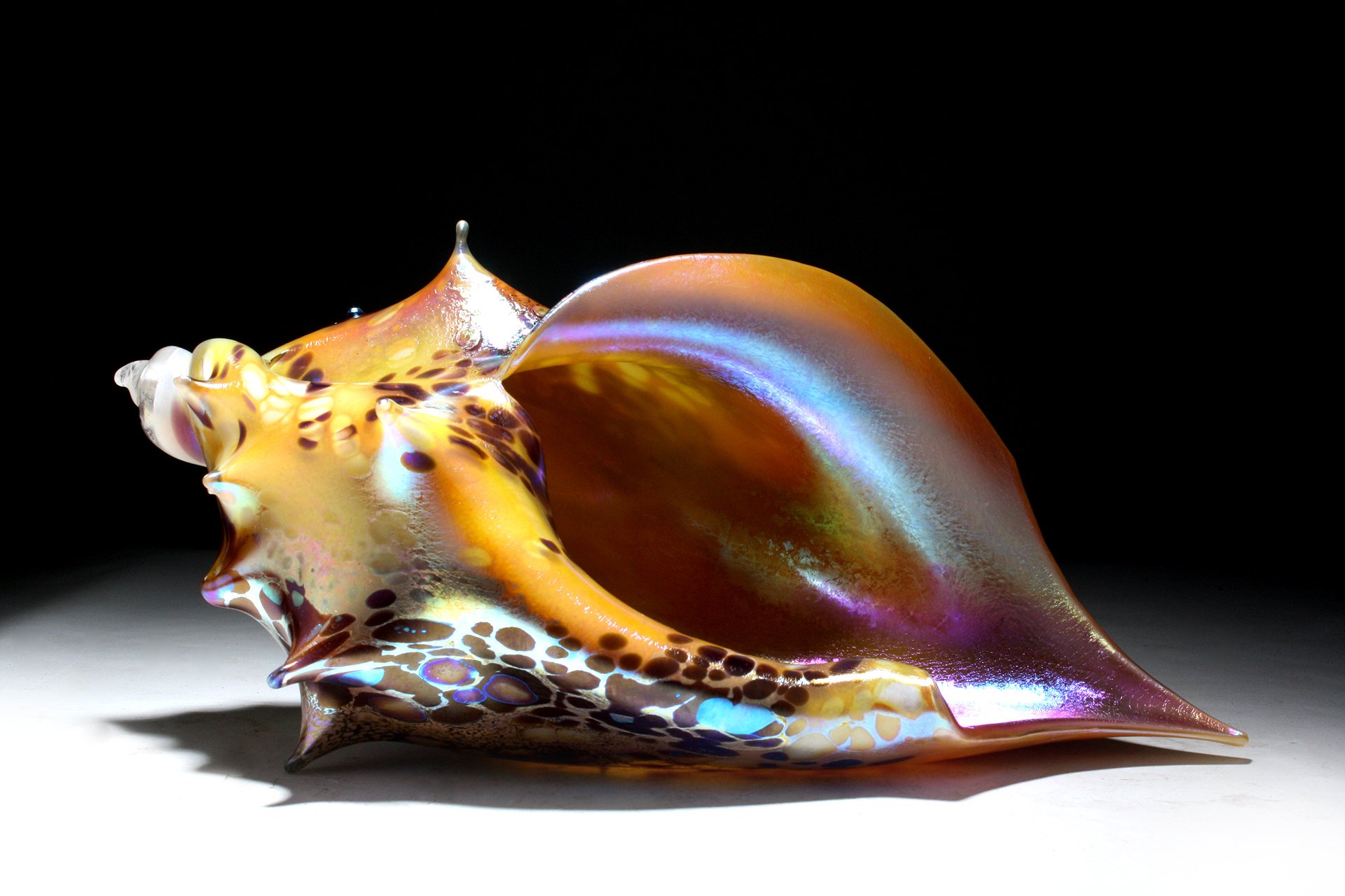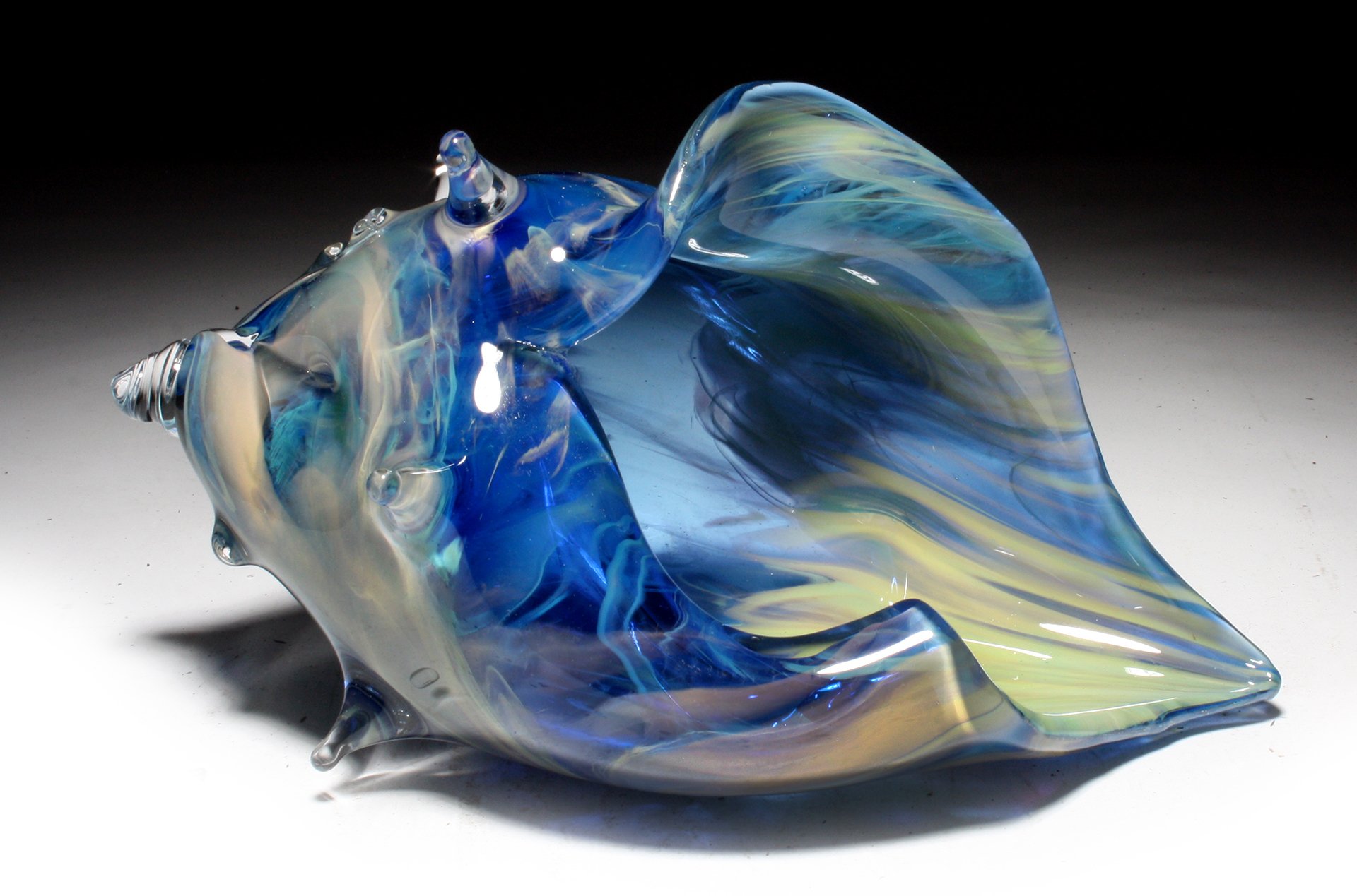 Our collection of Will Ortman’s glass seashells is ever-changing, with each piece showcasing a unique interplay of color, form, and light. Available in a range of sizes, prices begin at $220.